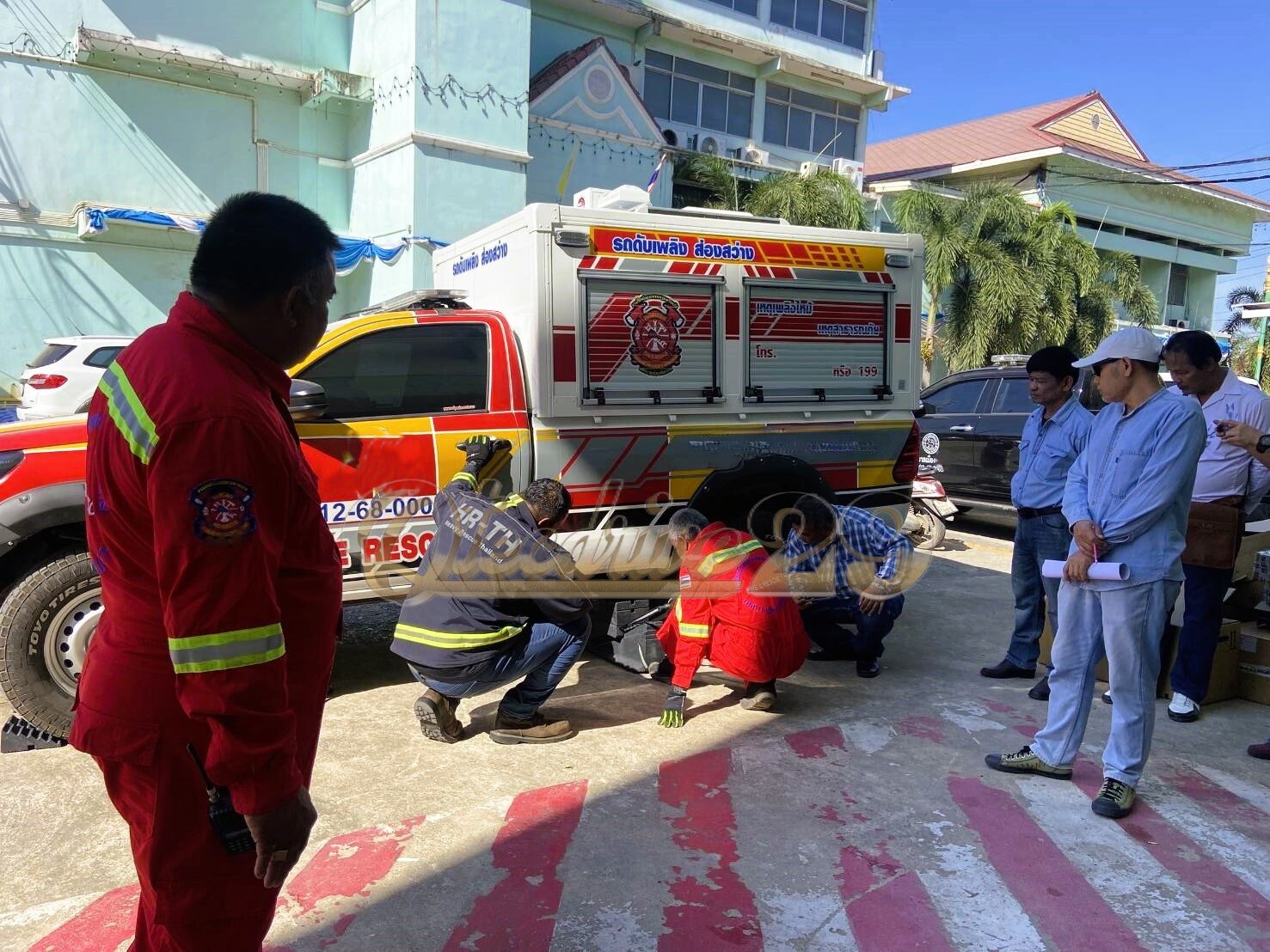 กับทีมผู้ปฏิบัติงานป้องกันและบรรเทาสาธารณภัยเรียบร้อยครับ