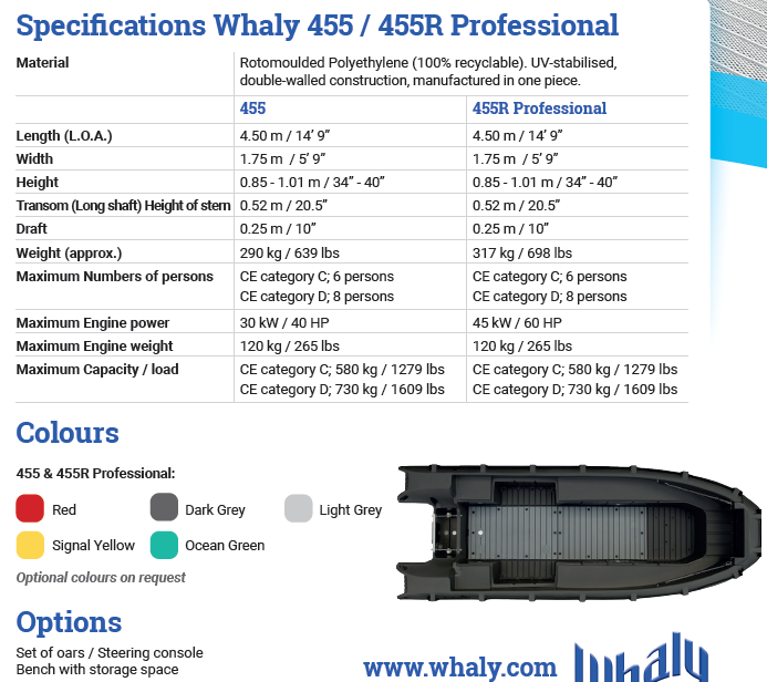 เรือกู้ภัย (RESCUE BOAT) ยี่ห้อ Whaly รุ่น 455R Professional มาตรฐาน EC type Certificate; Directive 2013/53/EU