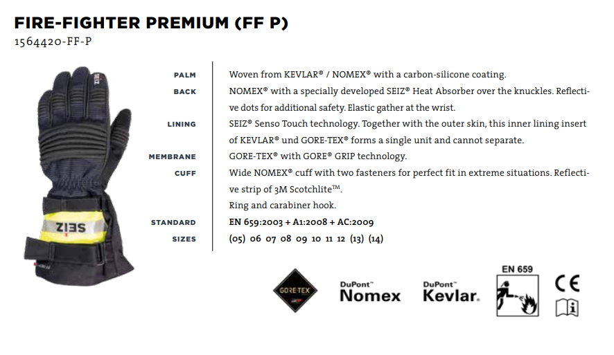ถุงมือดับเพลิง (Firefighter Glove) ยี่ห้อ SEIZ รุ่น PREMIUM มาตรฐานEN659