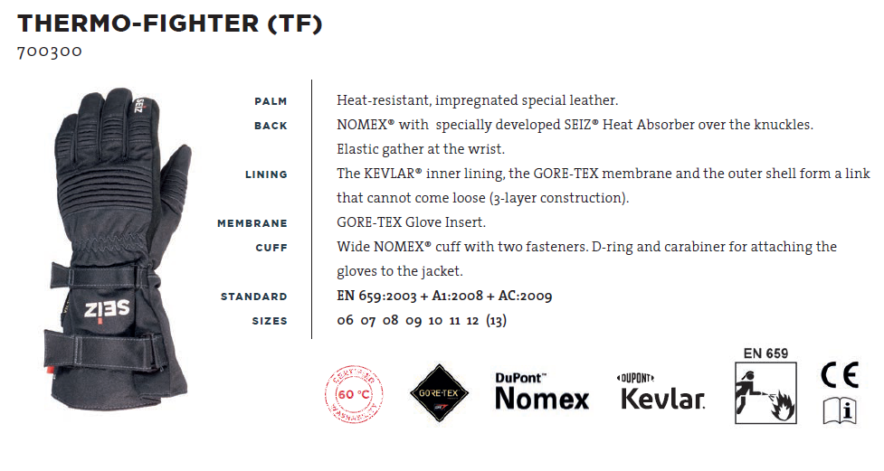 ถุงมือดับเพลิง (Firefighter Glove) ยี่ห้อ SEIZ รุ่น THERMO-FIGHTER มาตรฐาน EN659